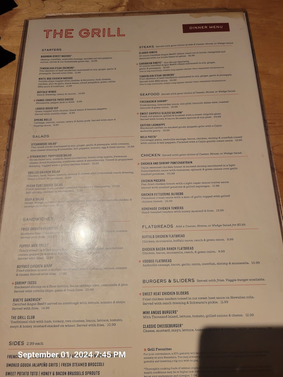 The menu features comforting staples like shrimp and grits or mashed potatoes alongside more vibrant options such as the ahi crunchy salad and spring rolls. Signature burgers and wraps provide familiar, flavorful bites, while the steak selections add an elevated touch for those looking to indulge a bit more. Brunch delivers playful twists on favorites with items like stuffed French toast and a Bloody Mary bar to complement the laid-back weekend vibe.